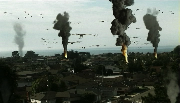 When the birds did finally show up it was at almost exactly the midpoint of the movie. (i started to get restless at about the 30 minute mark when i realized i hadn’t seen even a single bird so i was checking. well, that and the directionless romance was getting interminable. but i digress…)