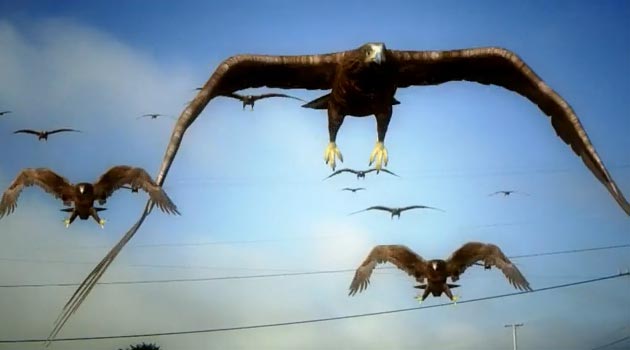 First we should talk about the birds themselves – they are, after all, the title characters. I can appreciate that training birds, let alone eagles and vultures, would be impossible thus the use of CGI birds is completely understandable. In Birdemic, however, I believe Writer/Director James Nguyen used C64 rather than CGI. (having had a commodore-64 back in the day, it probably could’ve been done a lot better if he’d really used one)