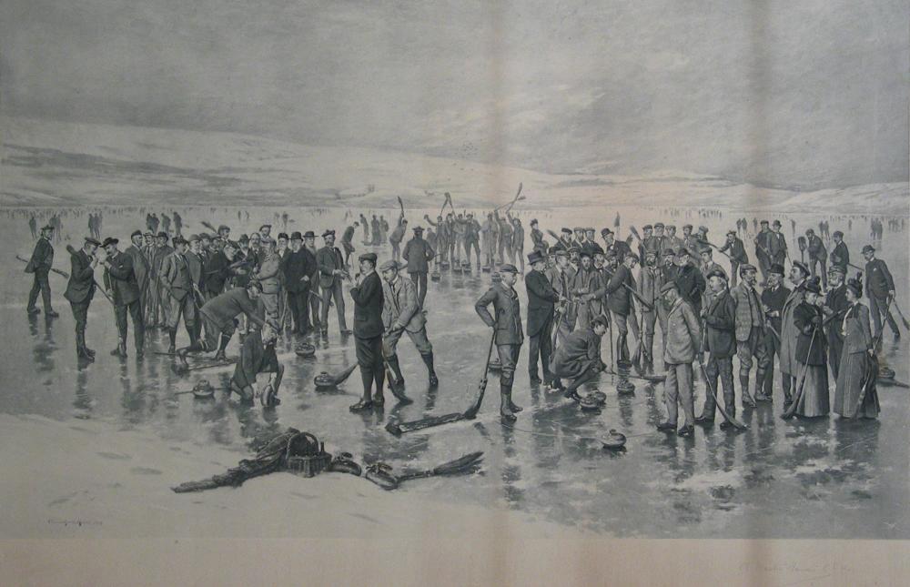 The sport of Curling has been around since at least the 16th century, and leave it to the ‘whack-a-tiny-ball-with-a-stick-into-a-hole’ Scots to create a ‘push-a-rock-around-on-a-frozen-pond’ game. Often called “The Roaring Game” for the sound the rock makes passing over the pebbled ice, the name “Curling” comes from the word “Cur” or “to grumble”. (although there is a bit of dispute here with some claiming that the name comes from the ‘curl’; the movement of the rock at the end of a throw. i don’t think so, however, as in early games the rock sizes were highly variable and the thrower had control over little more than the ‘weight’ of the throw. but i digress…)