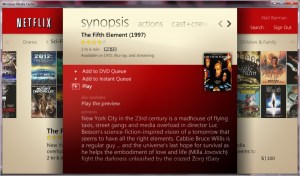 The integration of the Netflix api into Windows Media Center and it’s easy brows-ability by remote and visibility in the 10-foot interface (in other words, we can see it fine on the tee vee) kept the WAF (Wife Acceptance Factor, a paramount metric) high.